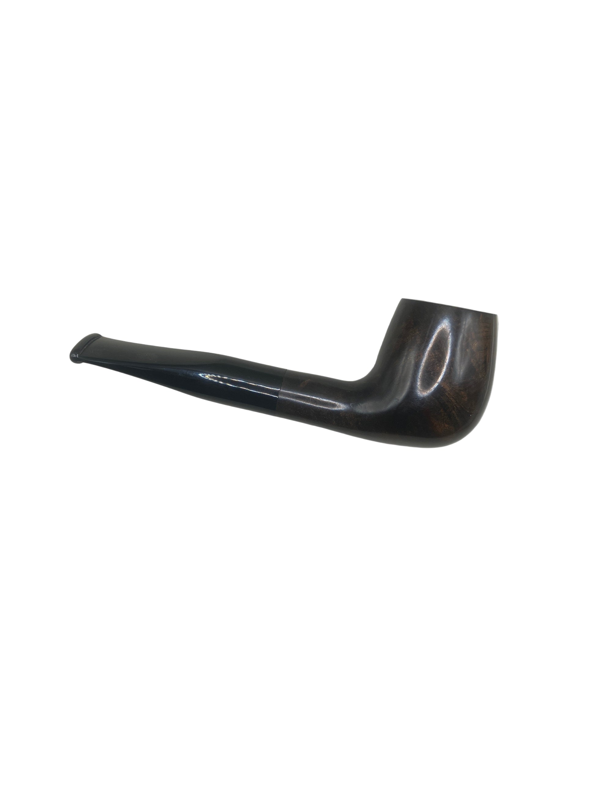 Munstycket är rakt och avslutas i en saddle-form som plattas ut mot spetsen. Detta ger en mjuk och bekväm känsla när man röker och håller pipan i munnen. Den raka linjen från skålen till munstycket förstärker pipans traditionella karaktär och skapar en ren och tydlig siluett.