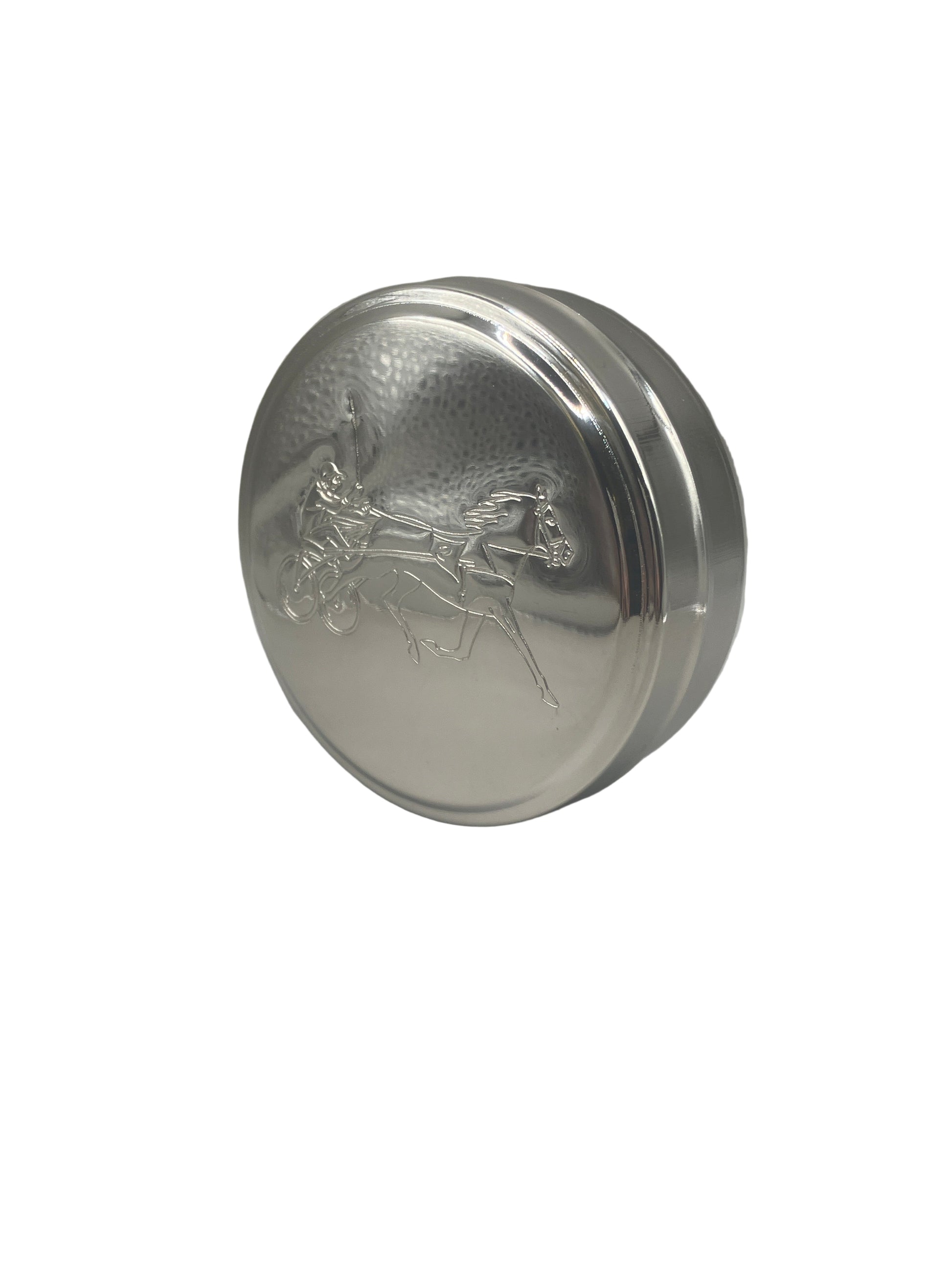 Plåtdosa Trav är en robust och stilren snusdosa i metall med graverat motiv inspirerat av travsporten. En perfekt dosa för dig som gillar fart, hästar och känslan av klassiskt hantverk.