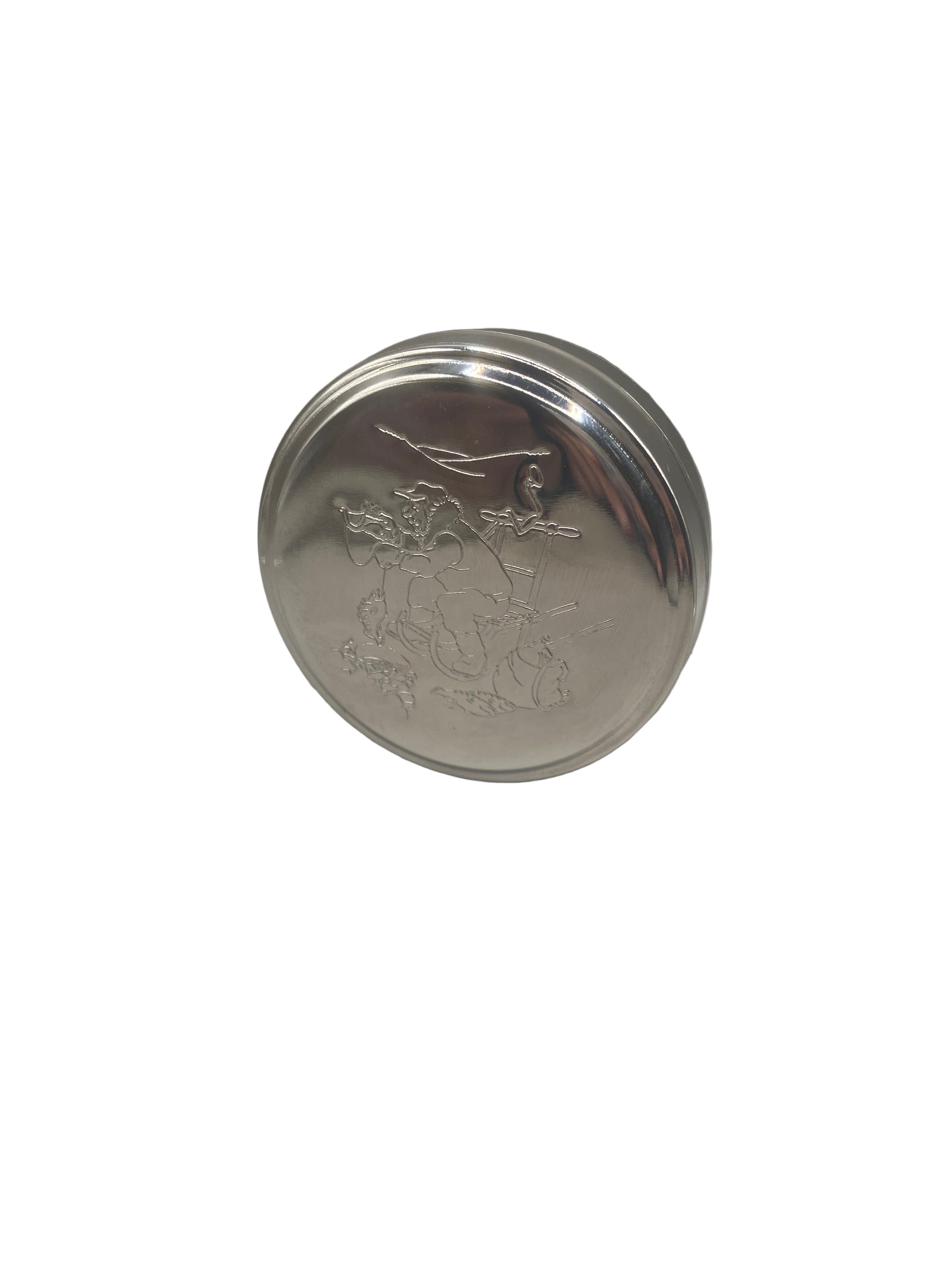 Plåtdosa med graverat motiv av pimpelfiske är en stilren och tålig snusdosa i metall. Det graverade motivet med pimpelfiske ger en genuin känsla av natur och friluftsliv – perfekt för dig som gillar att vara ute på isen eller vid vattnet.