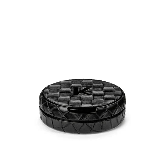 Weekend Kelly är skapad för dig som uppskattar subtil elegans och medveten design. Det flätade svarta mönstret i läderimitation ger ett sofistikerat uttryck som passar lika bra till vardag som till fest.